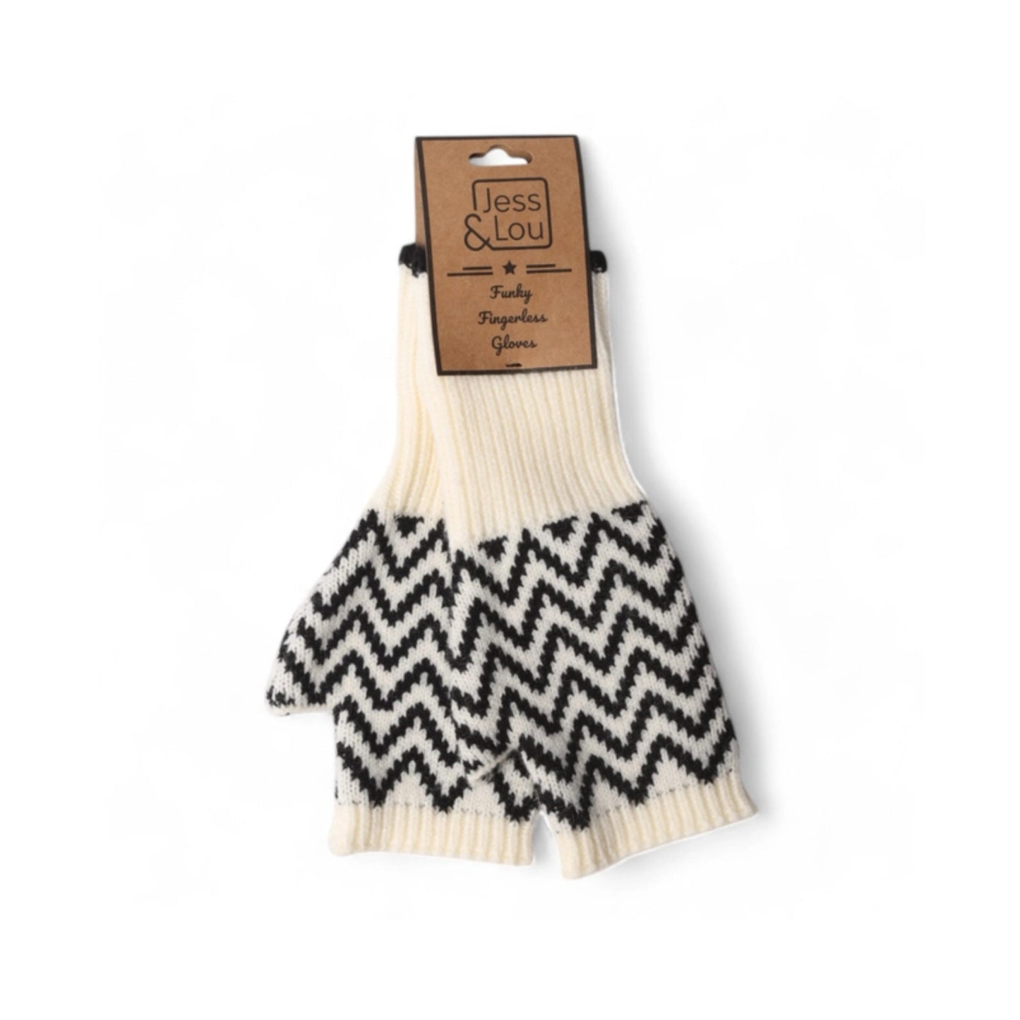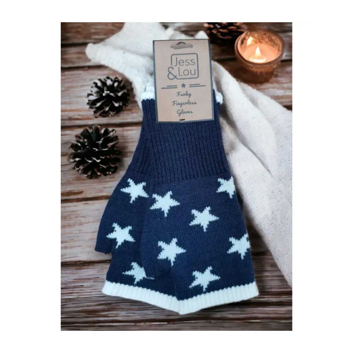 Navy and Cream Star Fingerless Gloves