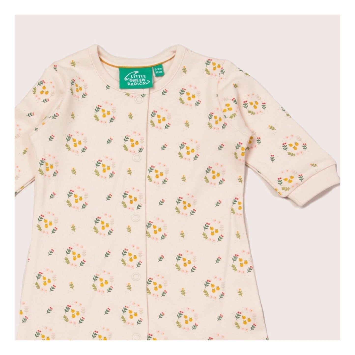 This intensely adorable, softer than soft Quince Flowers Babygrow by Little Green Radicals is the perfect one-garment outfit for your tiny tot. Featuring delicate flowers and tiny quinces on a cream background, this footie onesie is comfy, cosy, and cute.