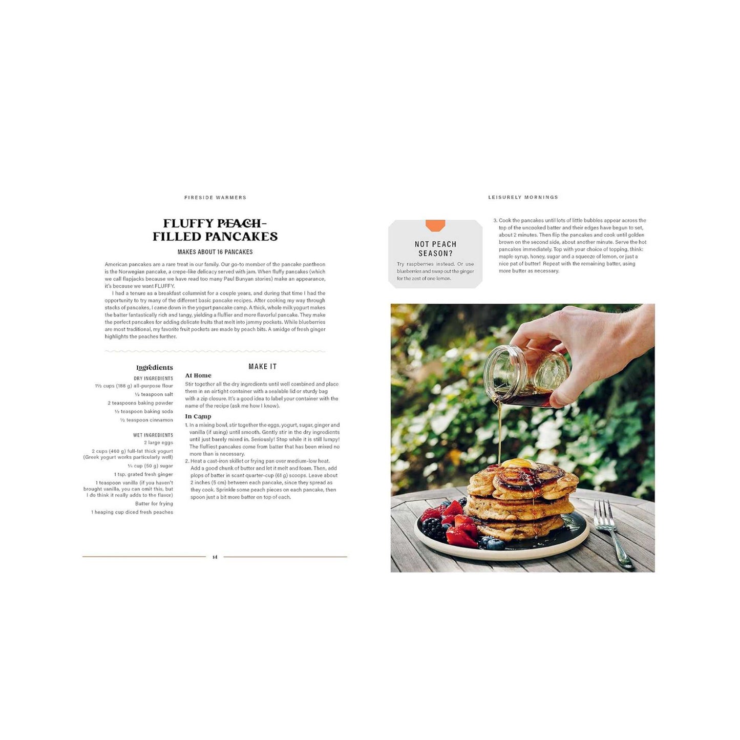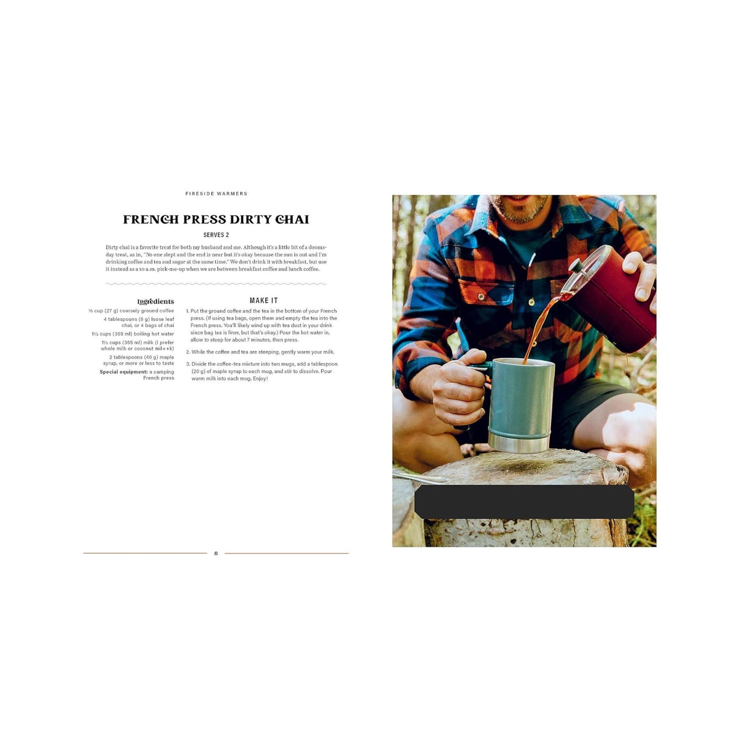Delicious and delectable recipes for the great outdoors - whether you're taking them camping or munching round the fire in your back garden, these are some tasty outdoor friendly recipes. Recipes includes snacks such as skillet spiced nuts, Norwegian stick bread with dips, and campfire queso; drinks including a fireside old fashioned, tinto de verano, and amaro spritz; adventure food like chimichangas, potpies and pizza pockets; after-dinner treats and cozy drinks such as peppermint schnapps hot chocolate - and even recipes to help you rise and shine the following morning, like French press dirty chai and fluffy peach-filled pancakes.