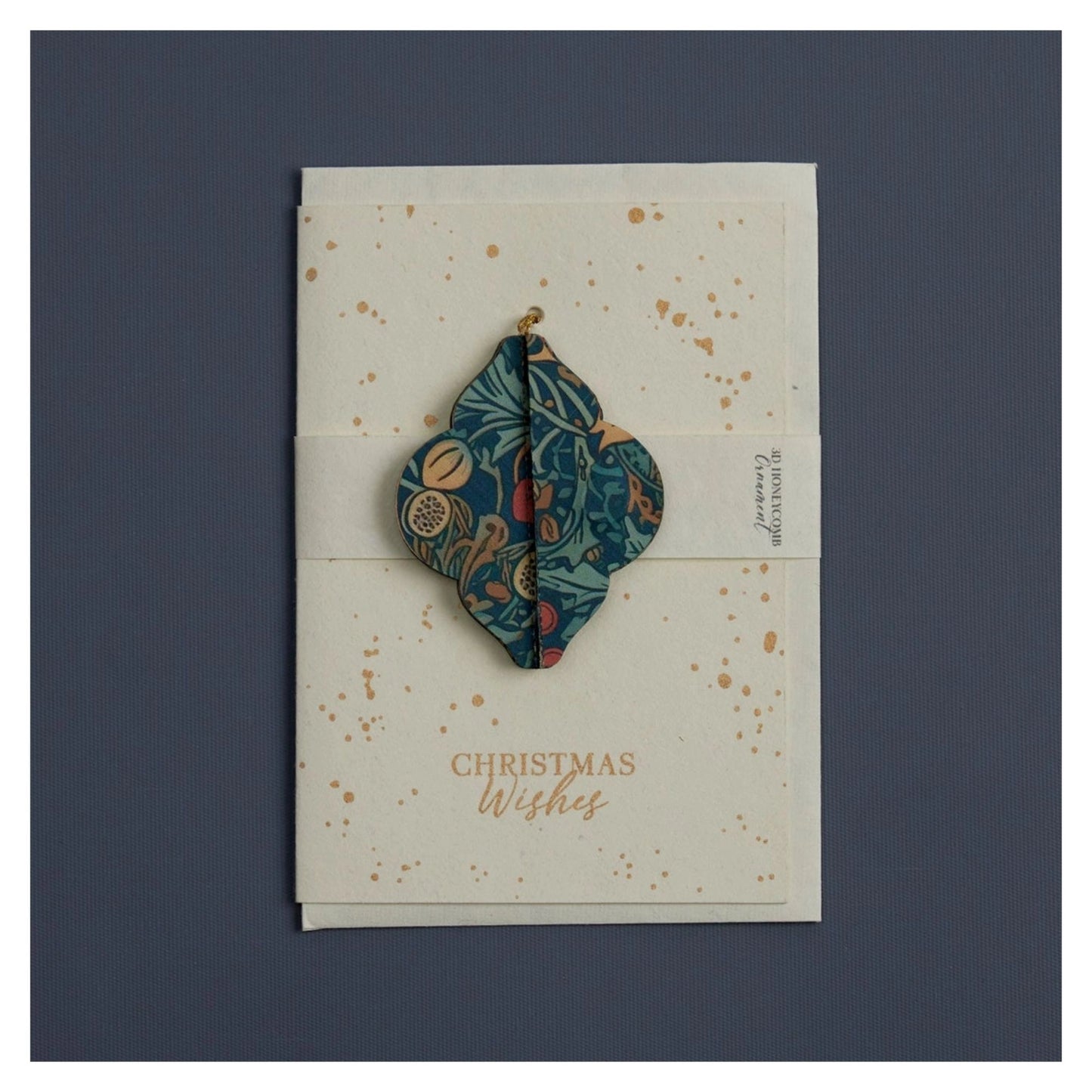 Every card includes a detachable honeycomb Christmas ornament which comes complete with a ready to hang gold string.
