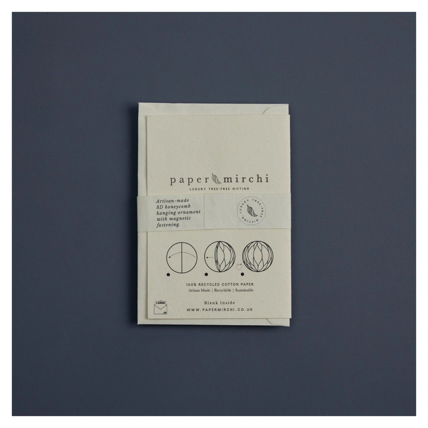 A stunning Honeycomb Lantern Greeting Card from Paper Mirchi. This keepsake decoration card is a sheer joy to send and receive.