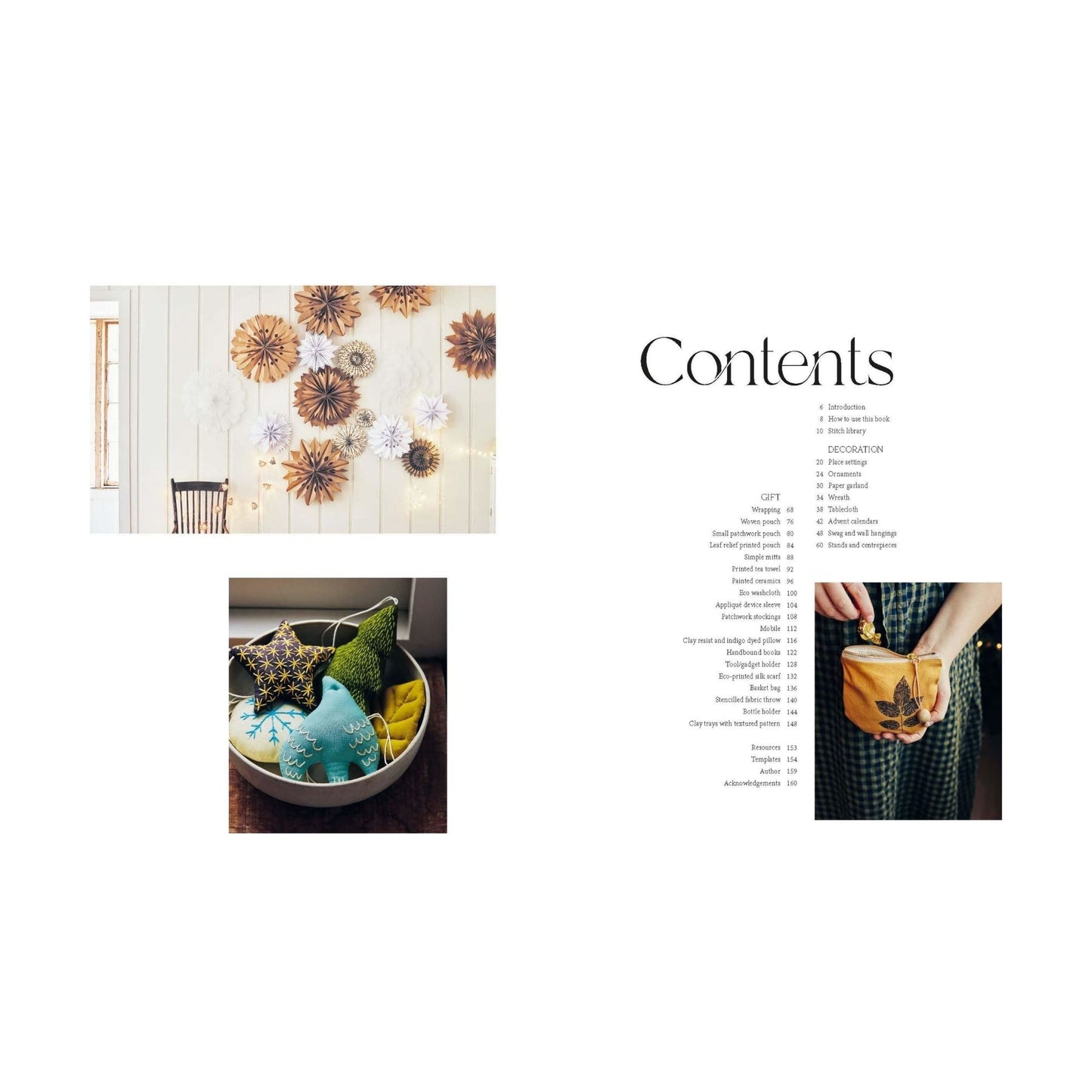 A celebration of the festive season through craft, featuring a beautiful collections of over 30 decorations and gifts designed with sustainability in mind. With stunning lifestyle photography and clear step-by-step instructions, it covers a variety of different crafts from embroidery, block printing, sewing and pottery, with projects for christmas decorations, advent calendars, wrapping paper, paper garlands and tablescapes for family gatherings.