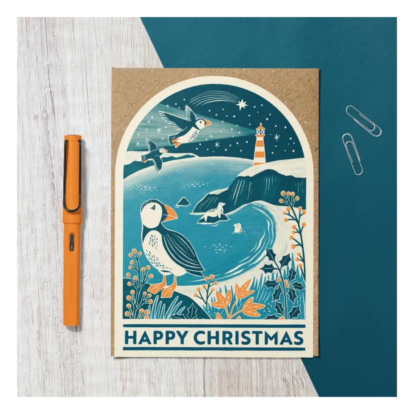Puffin Snow Globe Christmas Card