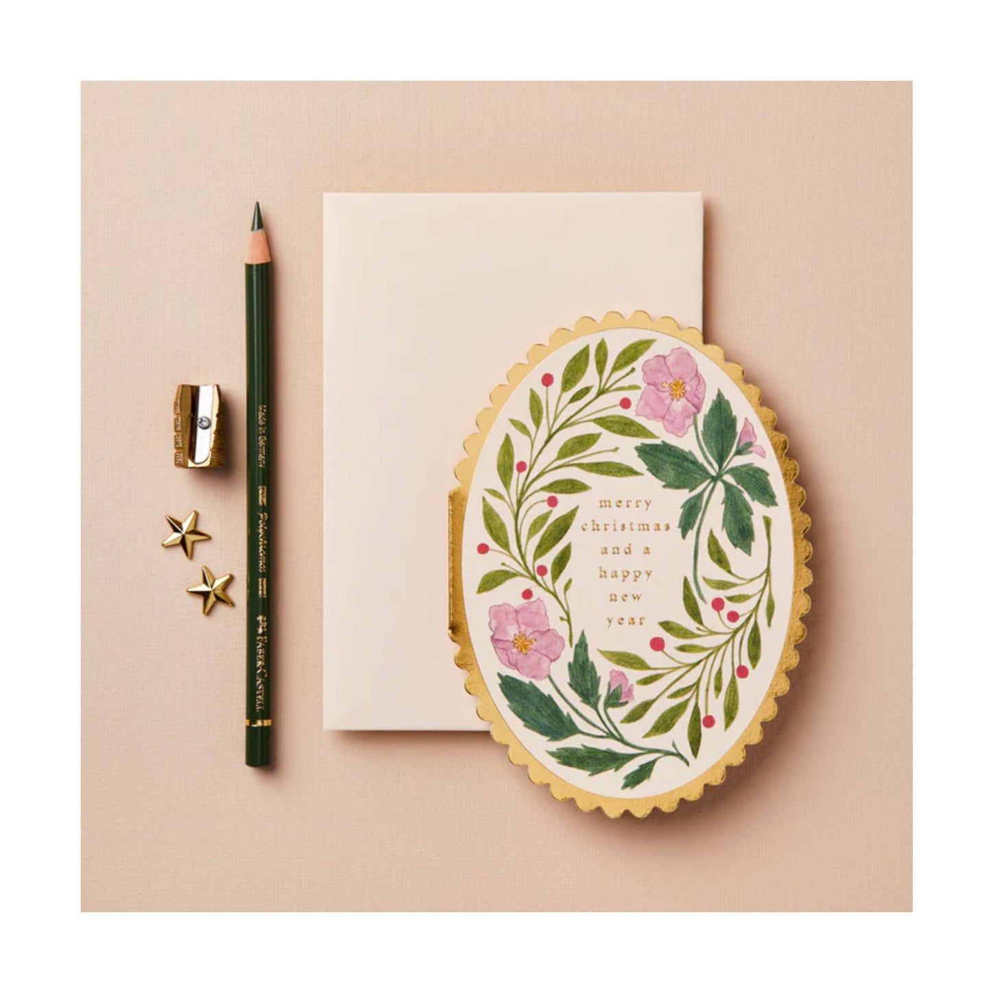 Pink Flora Christmas Card