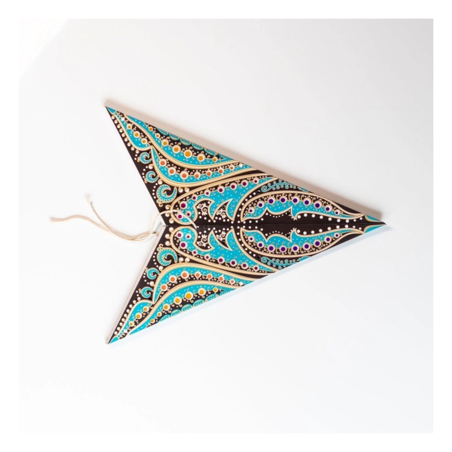 This dramatic boho style star lantern glows with rich rainbow colours to create an exotic ambience anywhere. Elegant teardrop-shaped motifs edged with flamboyant swirls taper towards each point of this 5-pointed lampshade. Tissue paper inserts soften the light to create a relaxing atmosphere – perfect for chillout spaces, colourful gatherings and cosy corners!