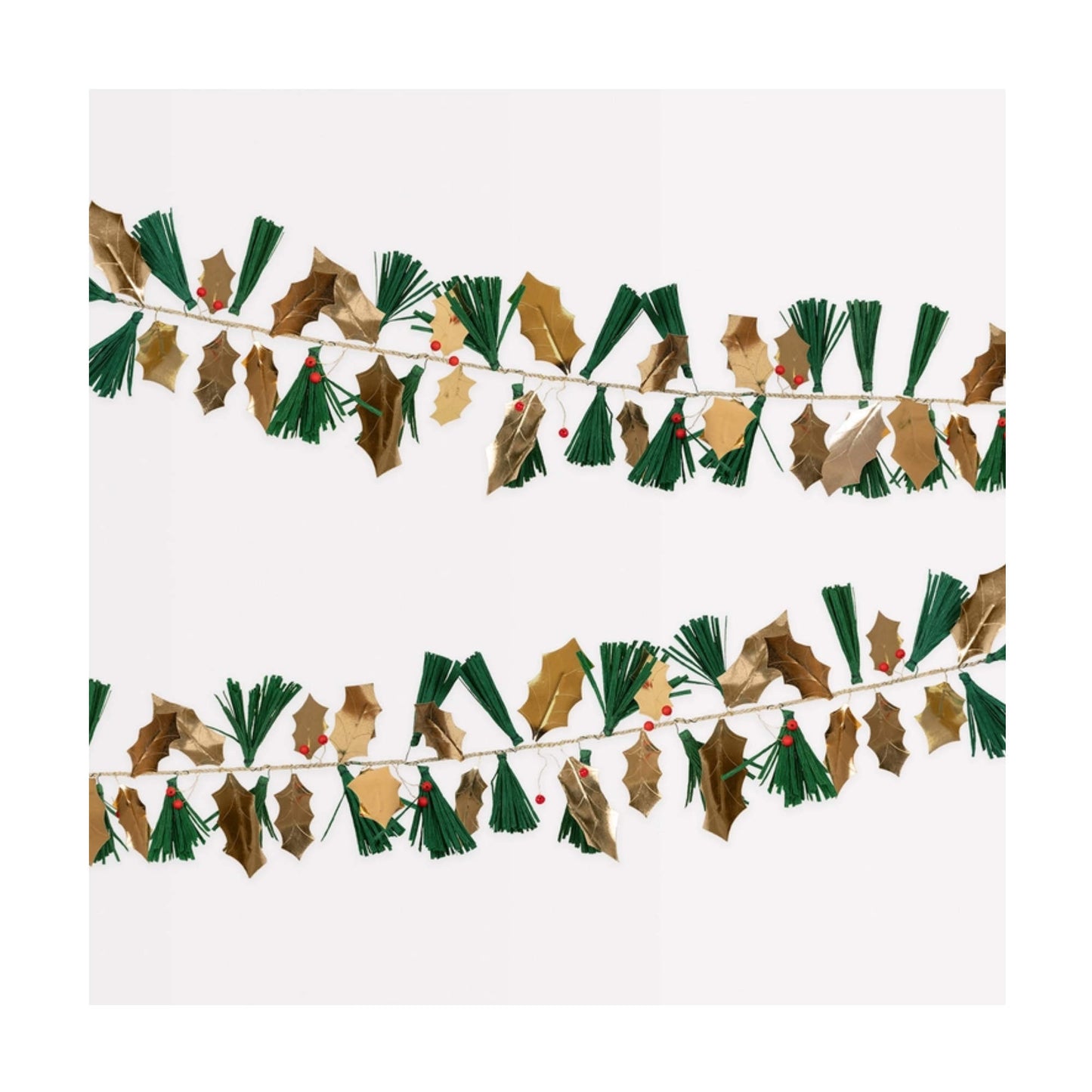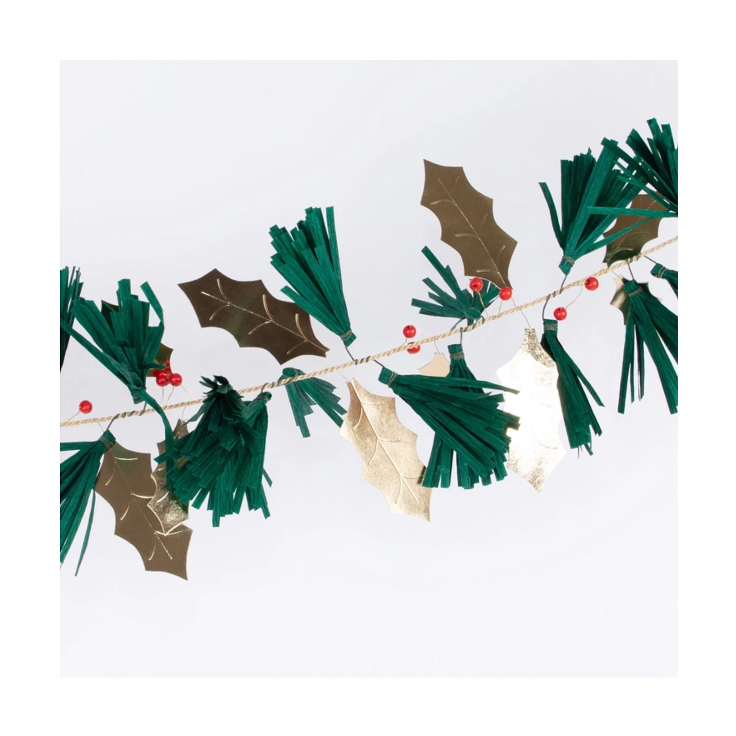 Bring the beauty of nature indoors with this wonderful wintry garland. It's beautifully crafted from crepe paper, gold foiled paper and wooden beads. Use it year after year for a stunning effect. The classic Christmas colours of red, green and gold will complement all your festive decorations. Hang it in the porch, above a doorway, or on the mantel, wall or party table, for a brilliant effect.