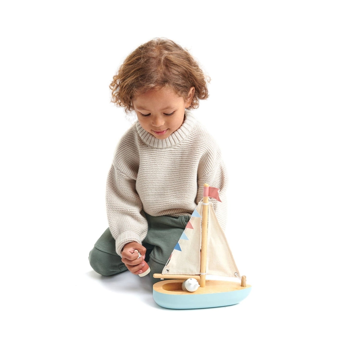 A gorgeous handcrafted Wooden Sailboat from Threadbear Design and Tender Leaf Toys. Fantastic for open ended play and storytelling.