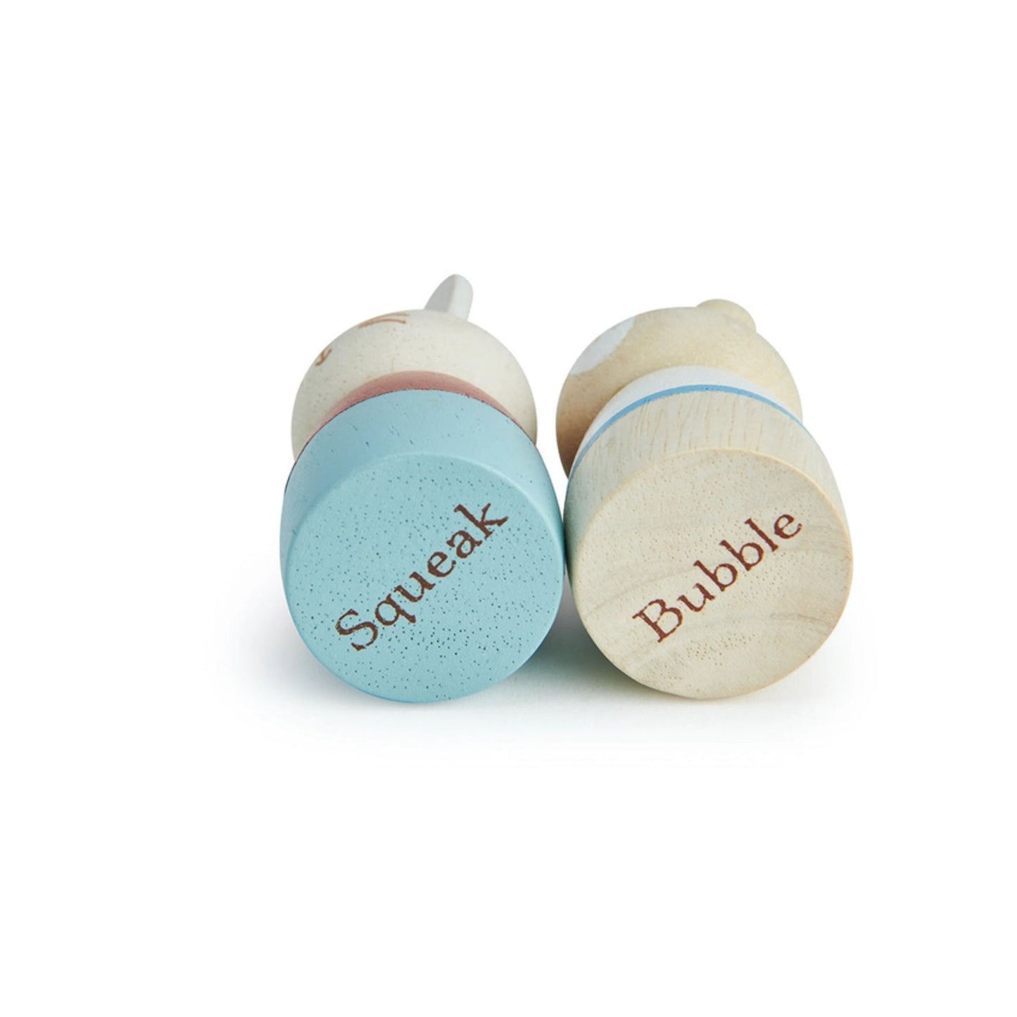 This Wooden Sailboat with two dolls, has been made with our wee ones in mind. Best friends Bubble and Squeak are on top deck, enjoying the views. With two fabric sails and some stylish bunting, these two friends have the coolest boat in the harbour.