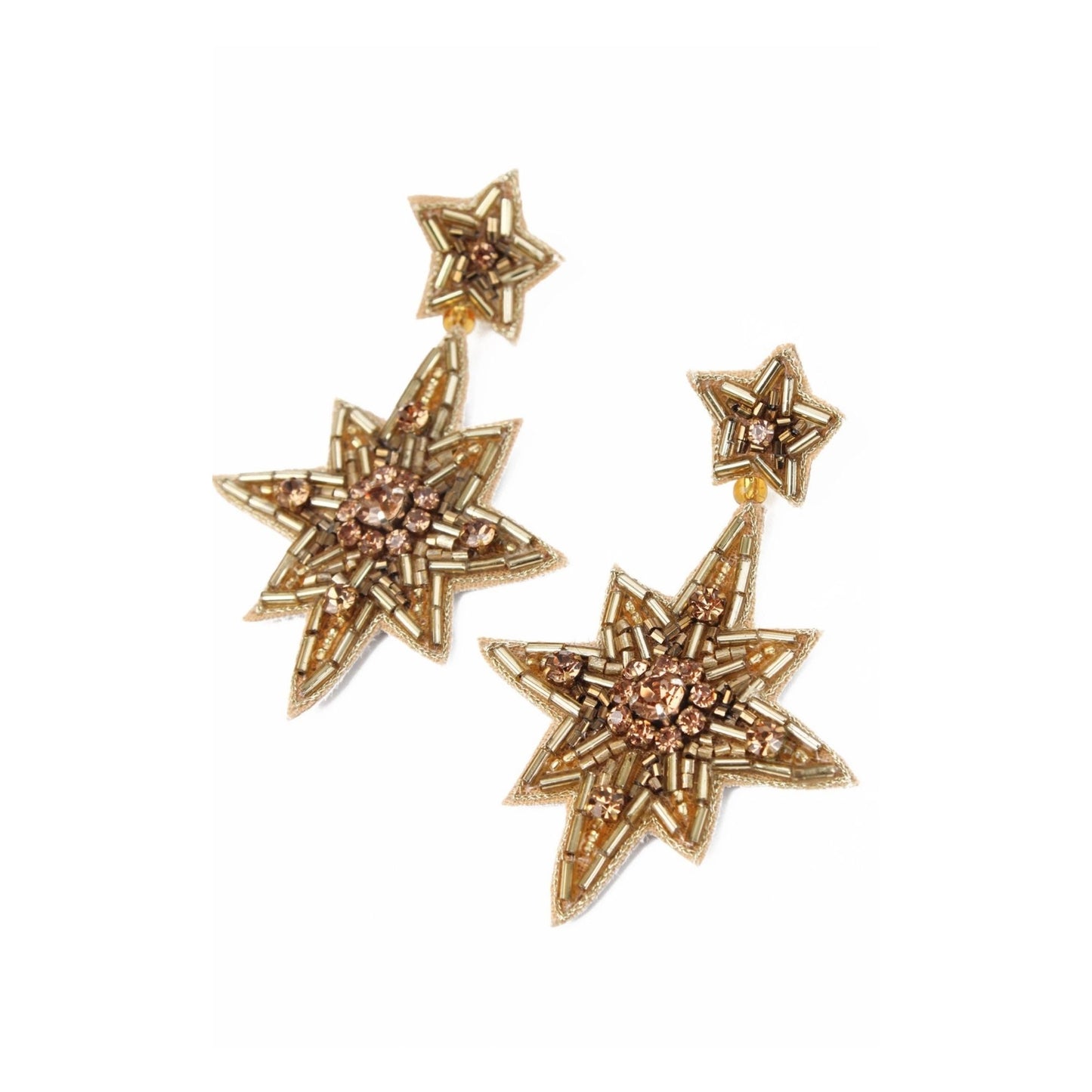 Large Gold Double Star Earrings