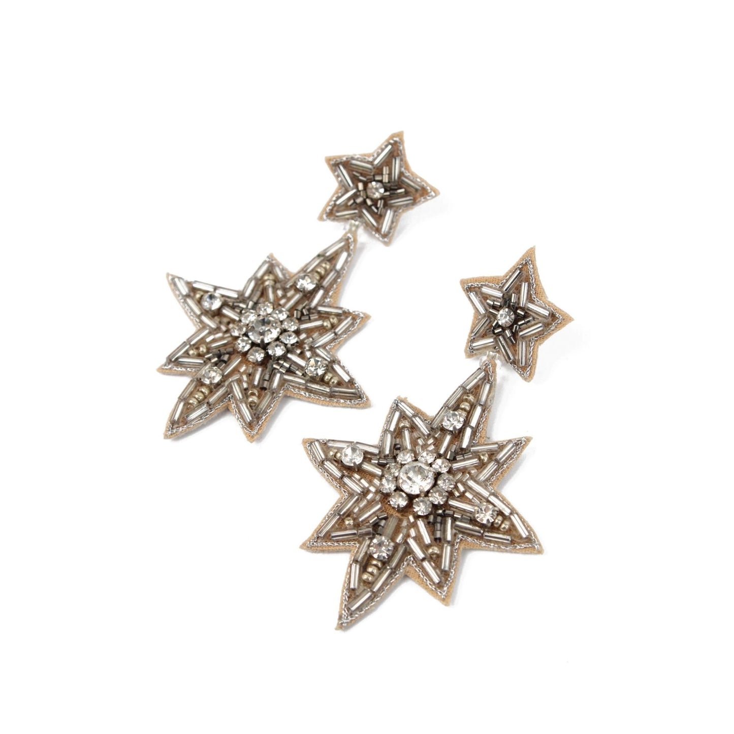 Large Silver Double Star Earrings