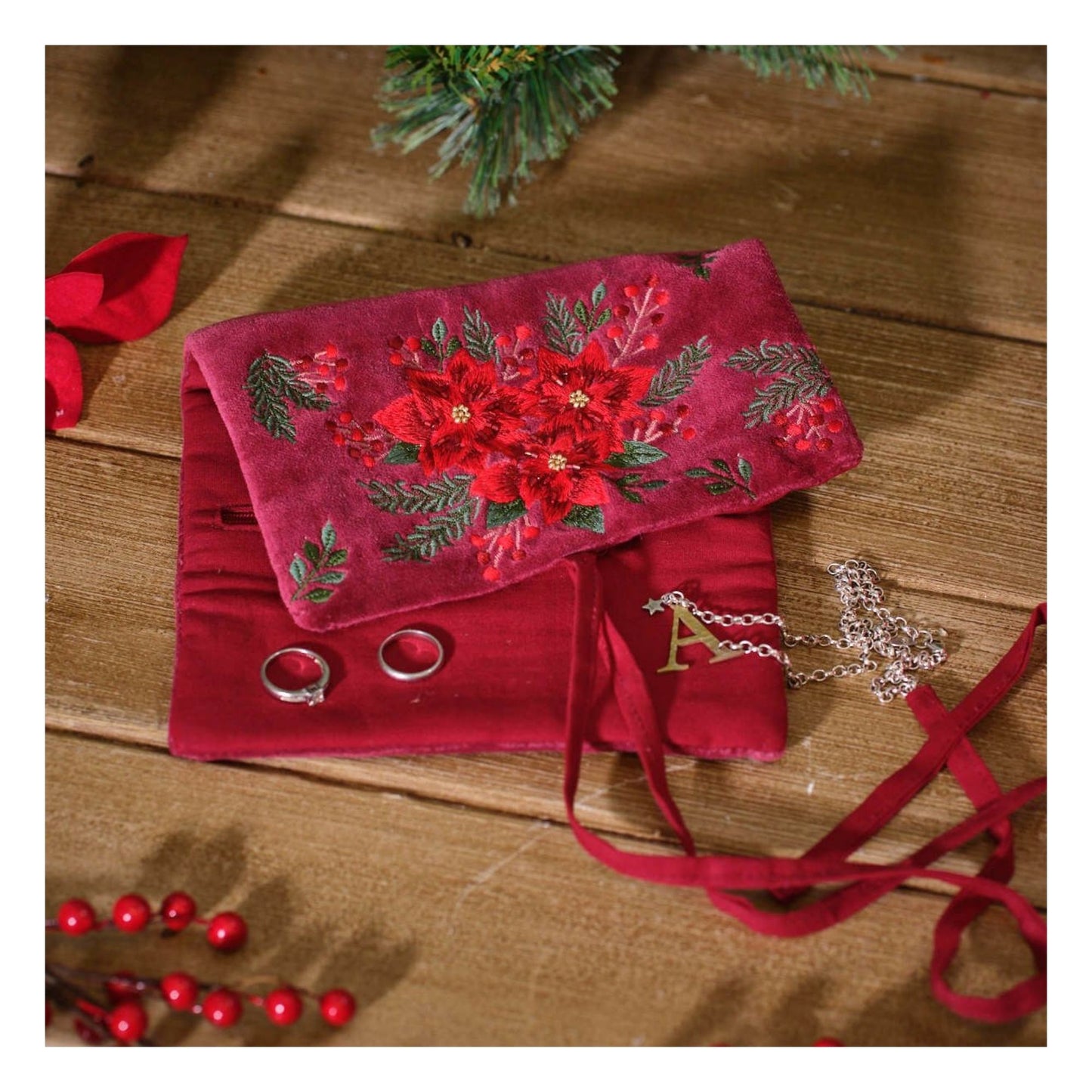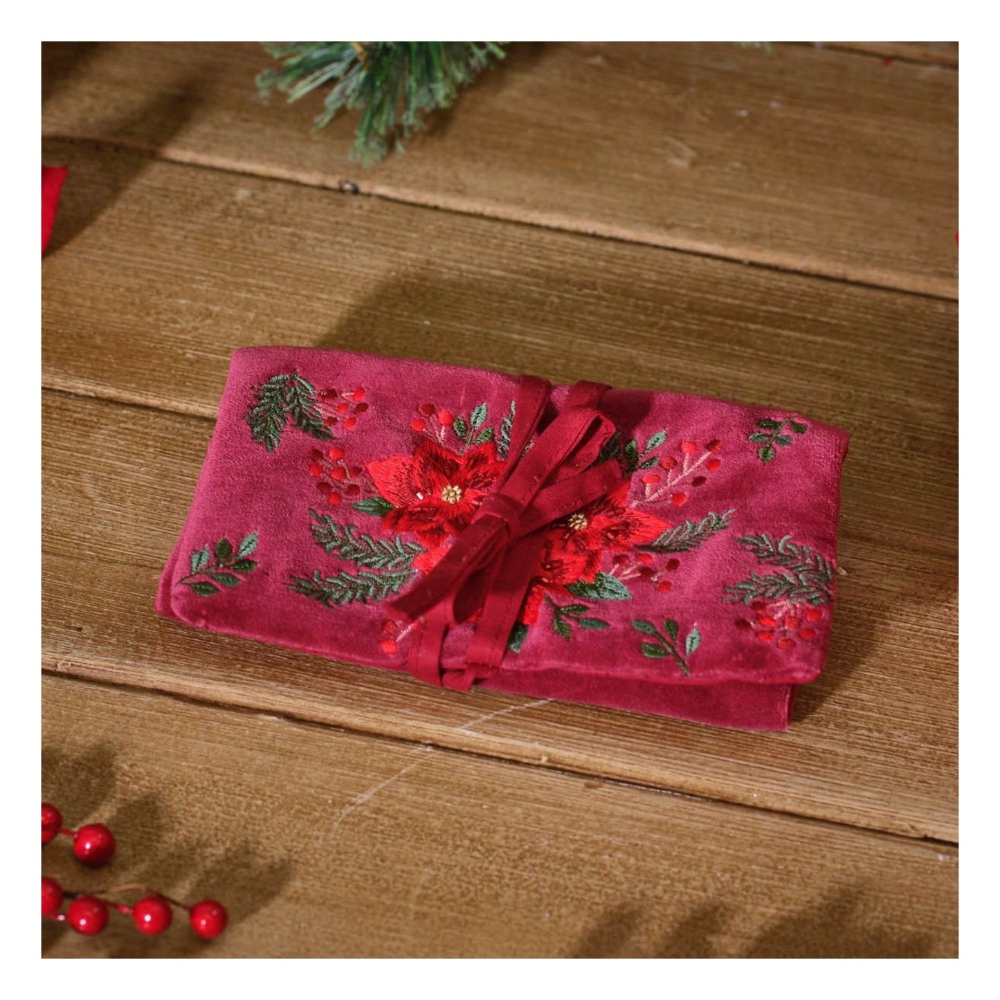 Poinsettia Velvet Jewellery Roll