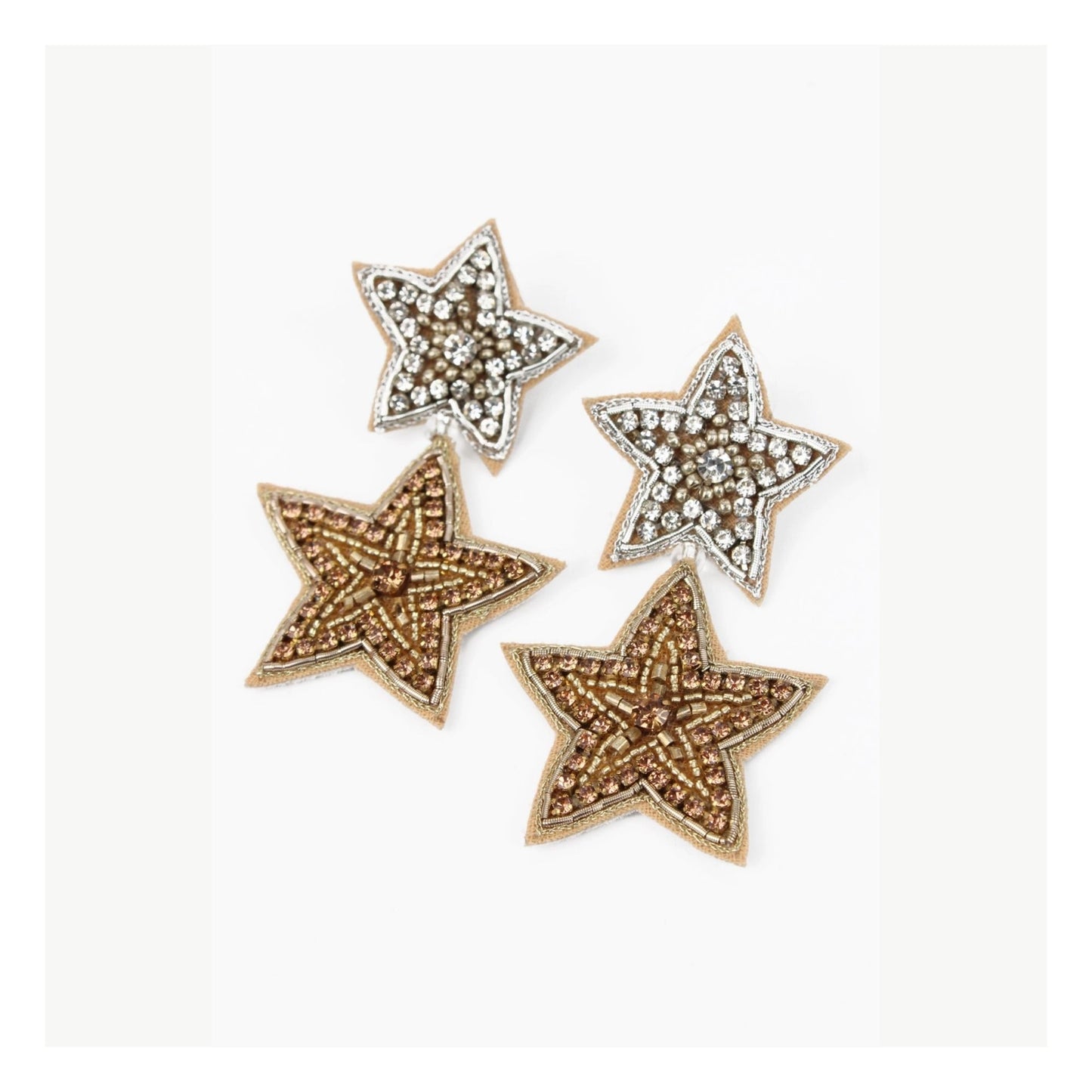 Silver & Gold Beaded Star Earrings