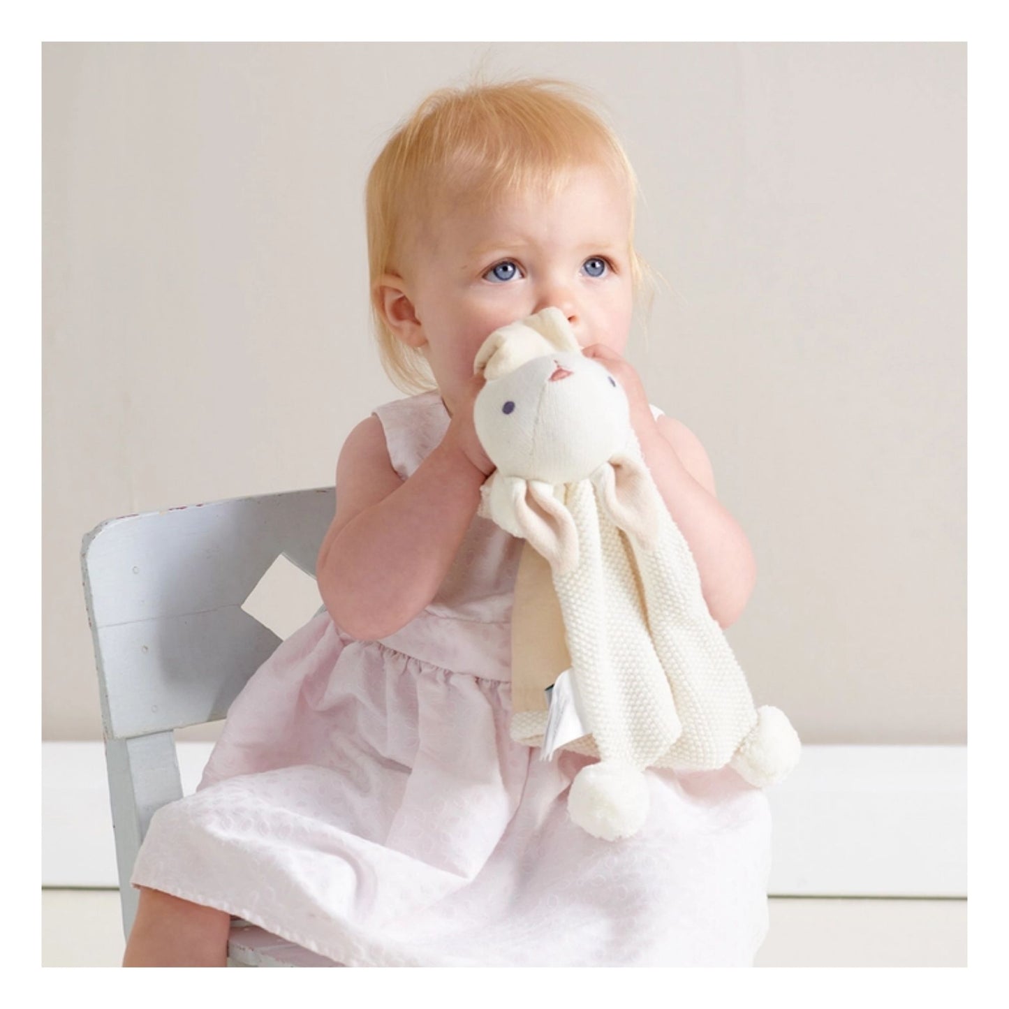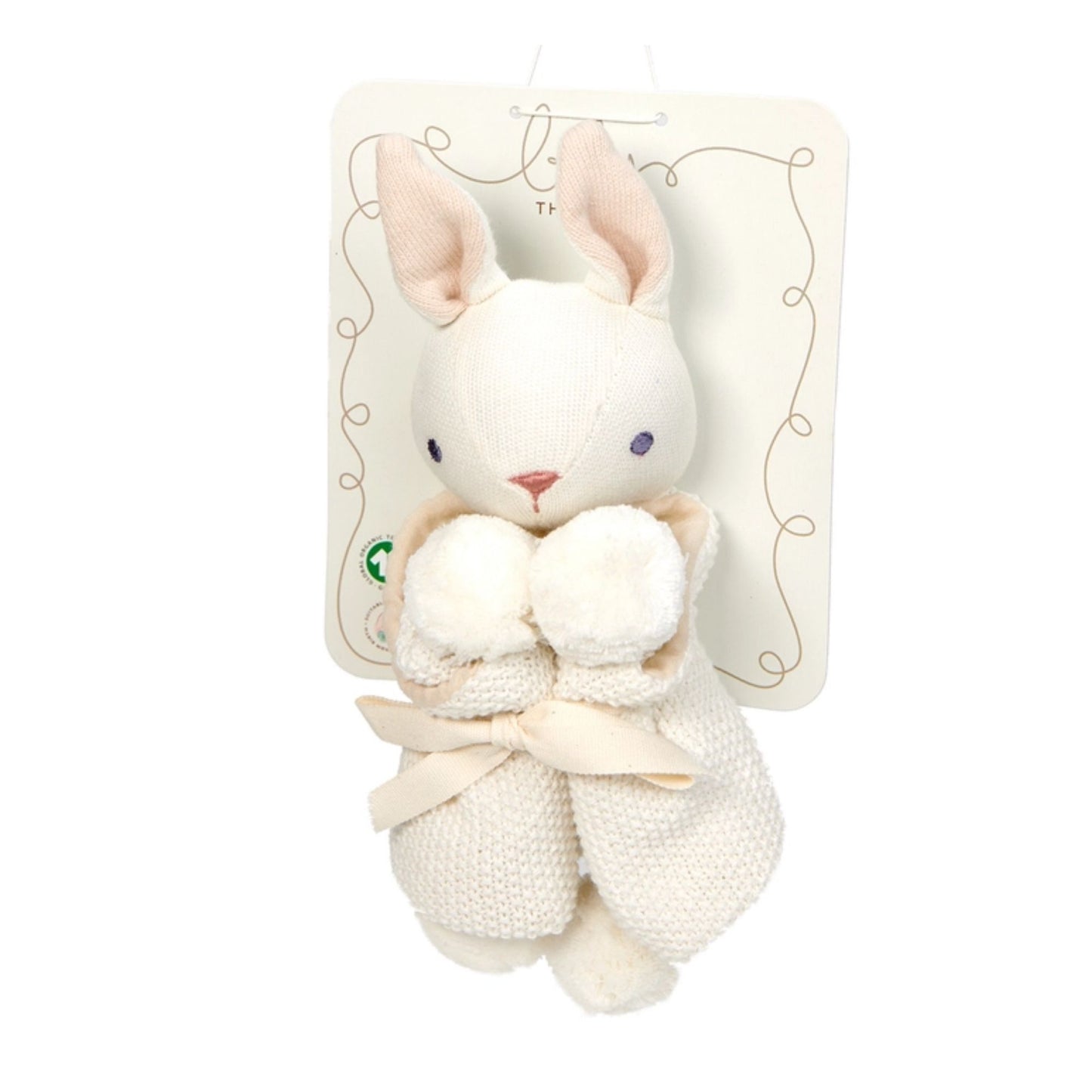 A snuggly bunny security blanket from Threadbear. This soft cream organic bunny comforter is the perfect comforting companion for a new baba.