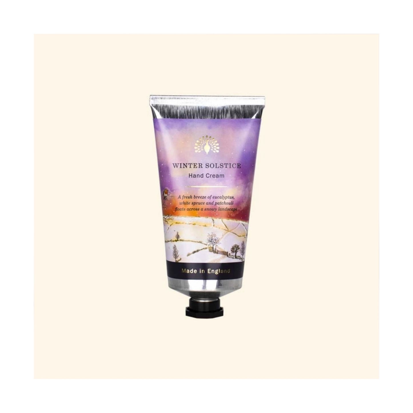 Give hands the attention they deserve with this Wintertide Winter Solstice Hand Cream, packed full of ingredients to keep skin feeling soft and protected. Encased in recyclable packaging and decorated with painted illustrations of a dusky English countryside in the snow.