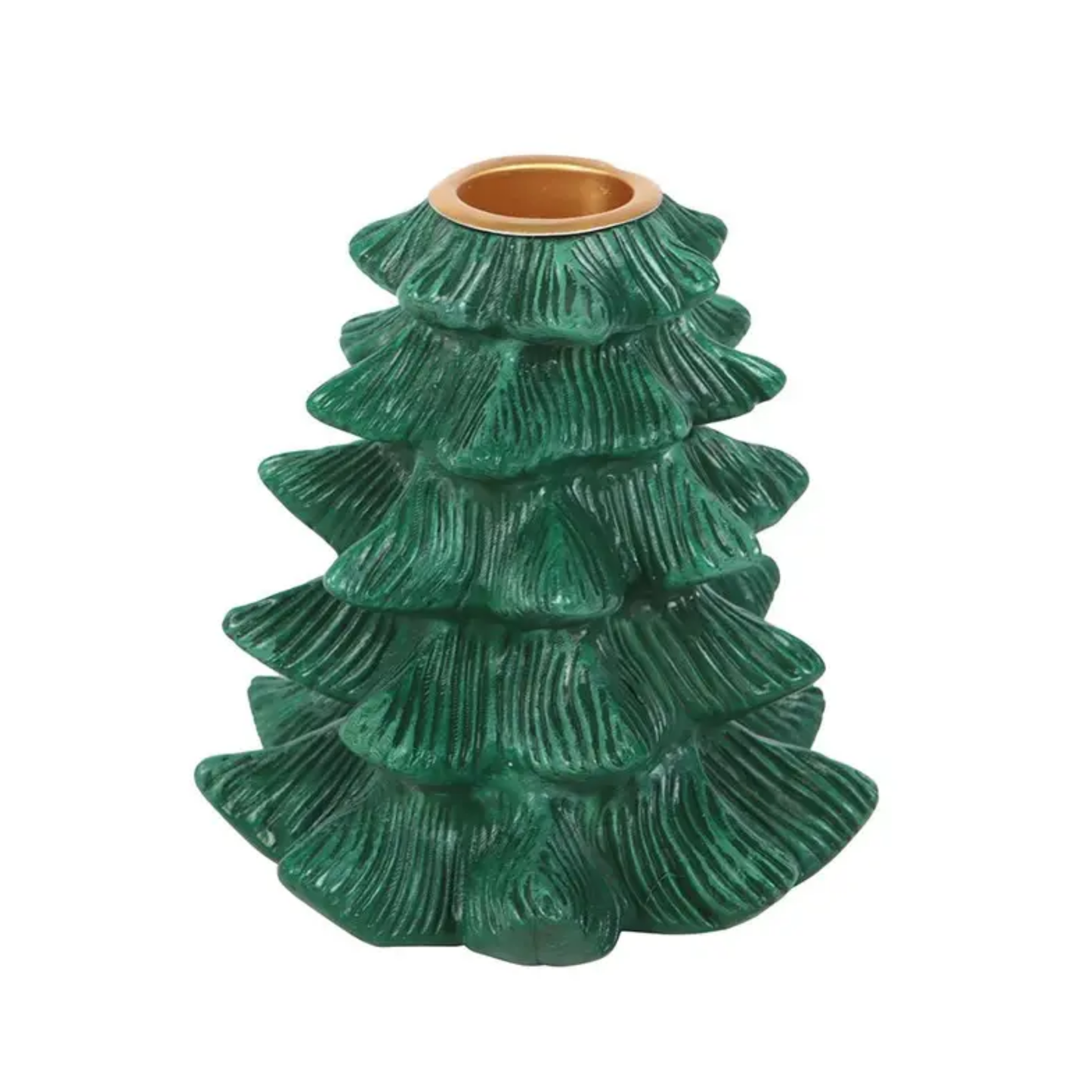 This green fir tree resin candle holder includes a matching taper candle, making it a stunning festive centrepiece for adding a warm, seasonal glow to any space. A great addition to Christmas tablescapes or as a thoughtful gift for winter lovers. The Green Fir Tree Christmas Candle Holder with Dinner Candle is ideal to add some festive flare!