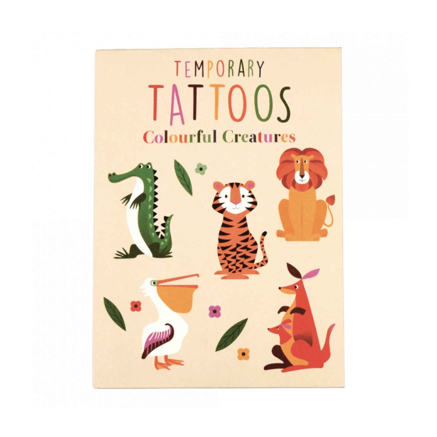 A pack of Colourful Creatures temporary tattoos, 5 characters and flowers to cut out and apply! Great for children's party bags and kids parties, just add water to apply.
