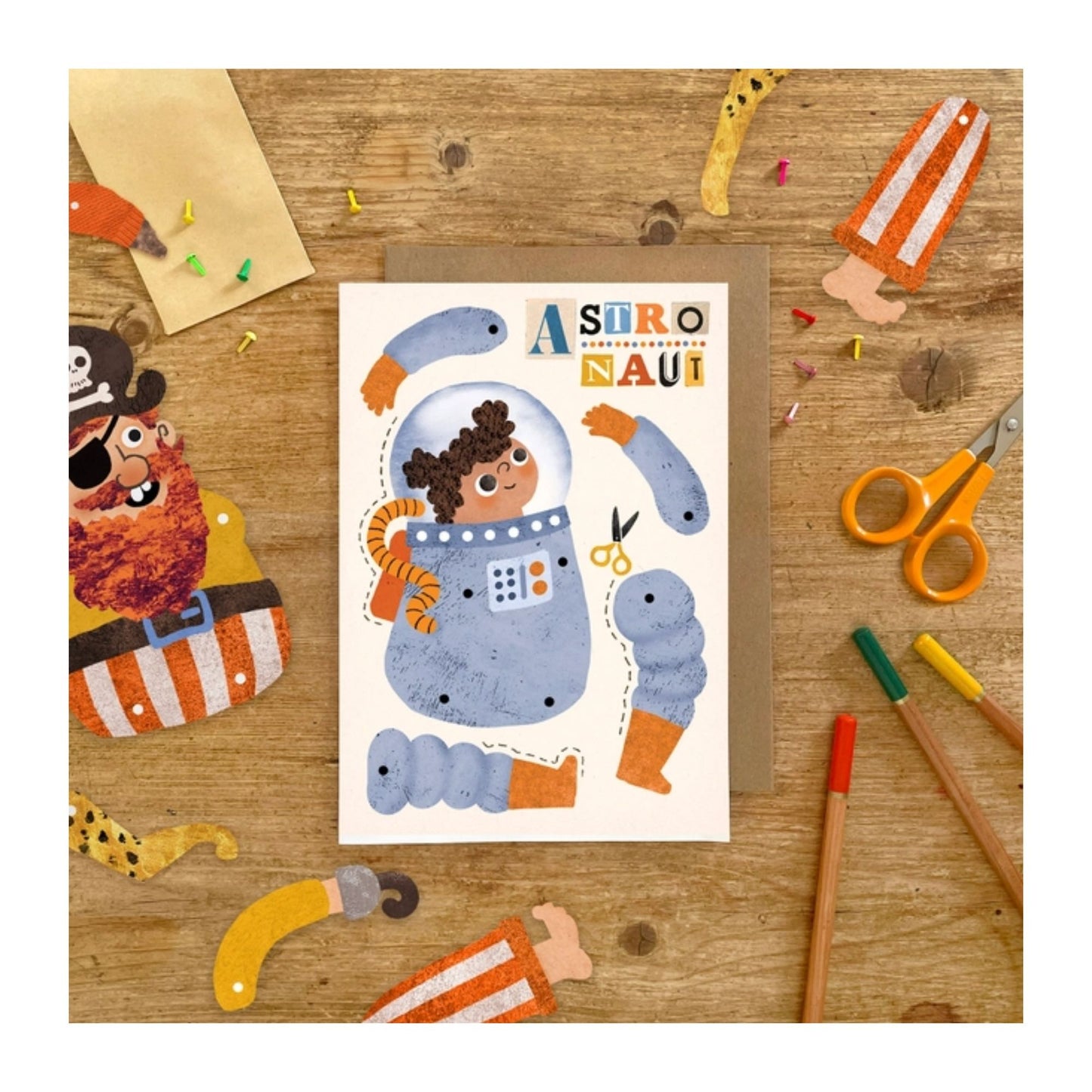 Astronaut Split Pin Puppet A5 Greeting Card