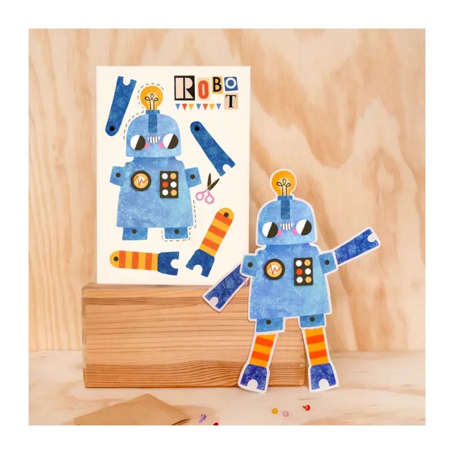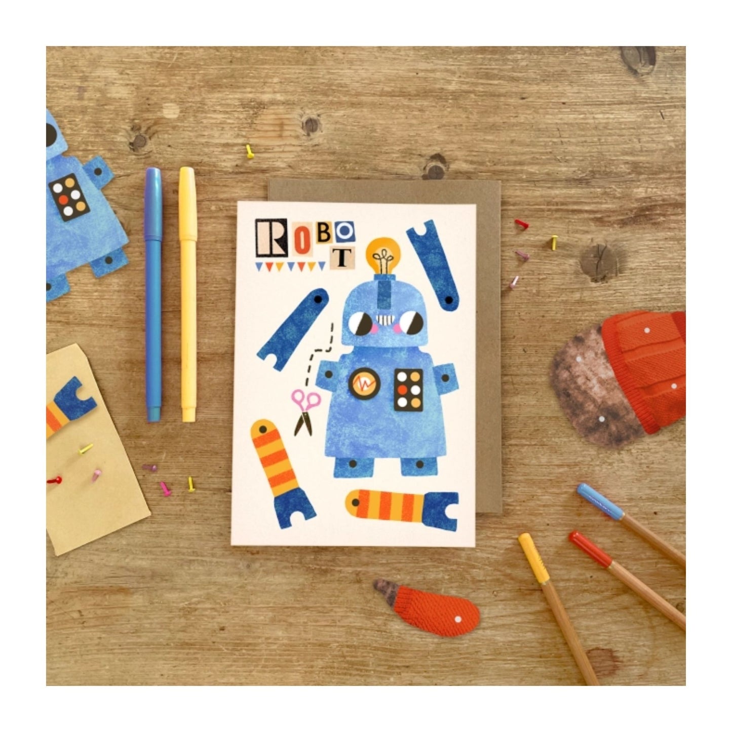Robot Split Pin Puppet A5 Greeting Card