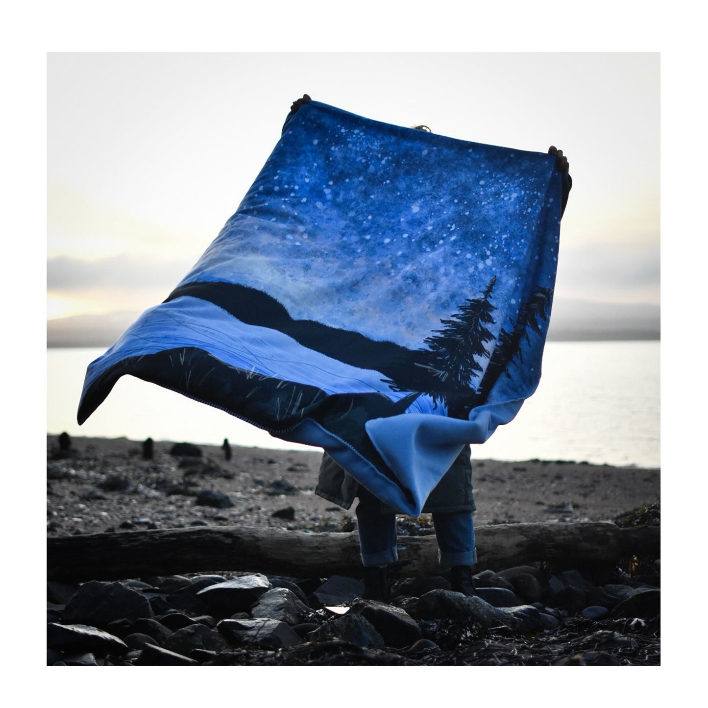But let's face it, star gazing outside at night can be a little chilly! These extra cosy, luxurious double fleece blankets are printed on one side in our beautiful Starlight illustration and backed with a matching sky blue-coloured fleece on the reverse.
