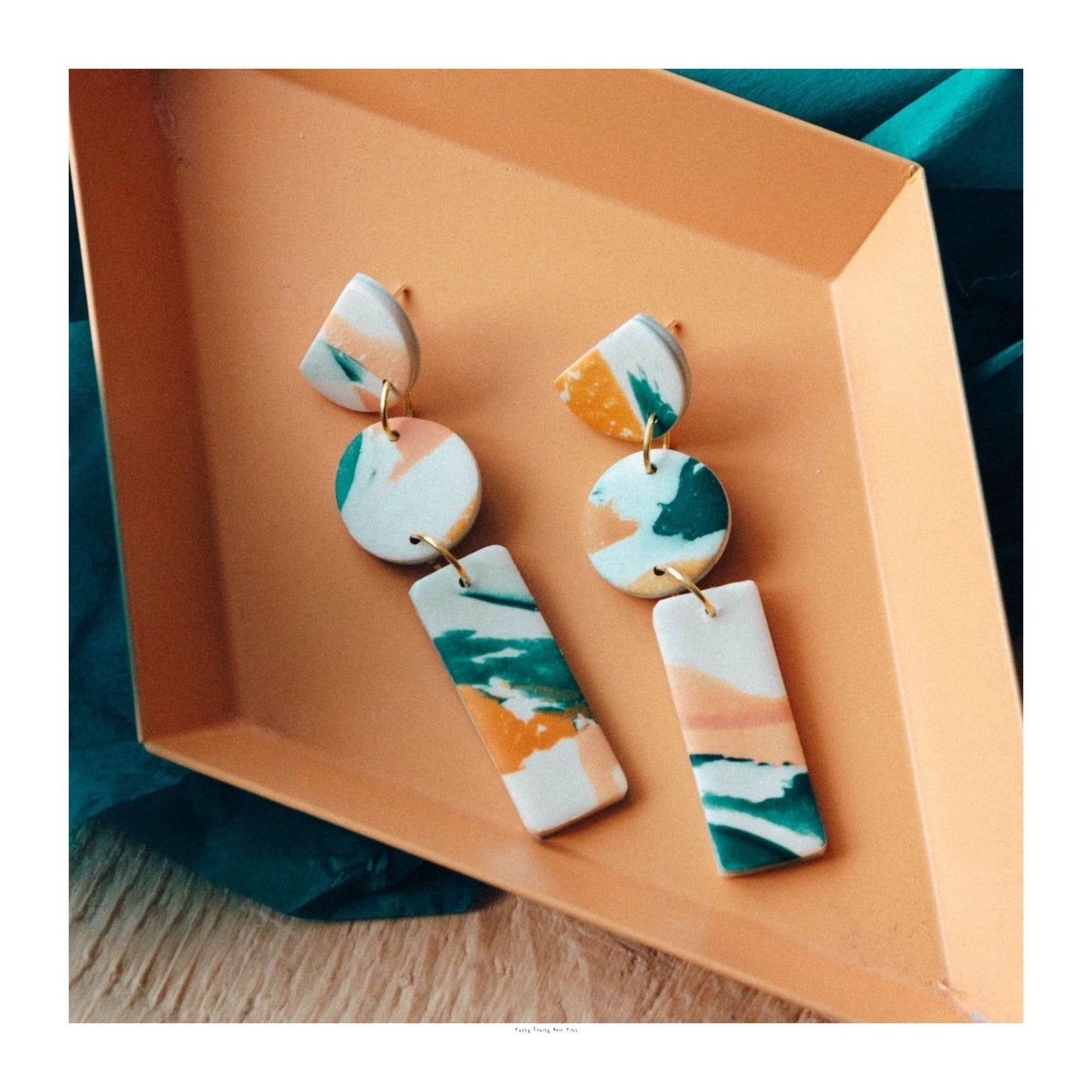 Whether you're seeking to make a style statement or searching for the perfect gift, these Lagoon Watercolour Cairn Stack Earrings are here to add a touch of artistic flair to your life. Let your style speak volumes with these polymer clay earrings from Pepper You that effortlessly combine creativity and elegance. Get ready to turn heads and radiate confidence with every wear!
