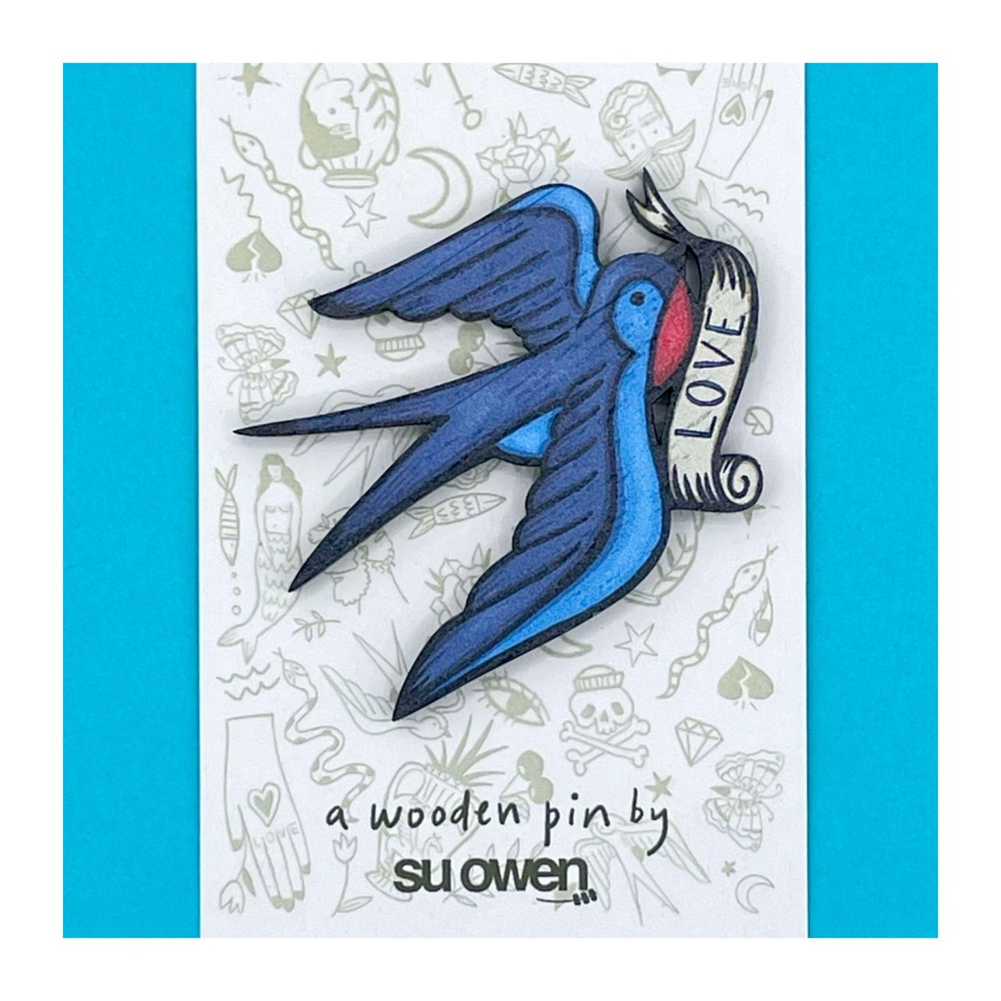 We're absolutely head over heels with this Swallow Tattoo Style Wooden Brooch at Harbour Lane.