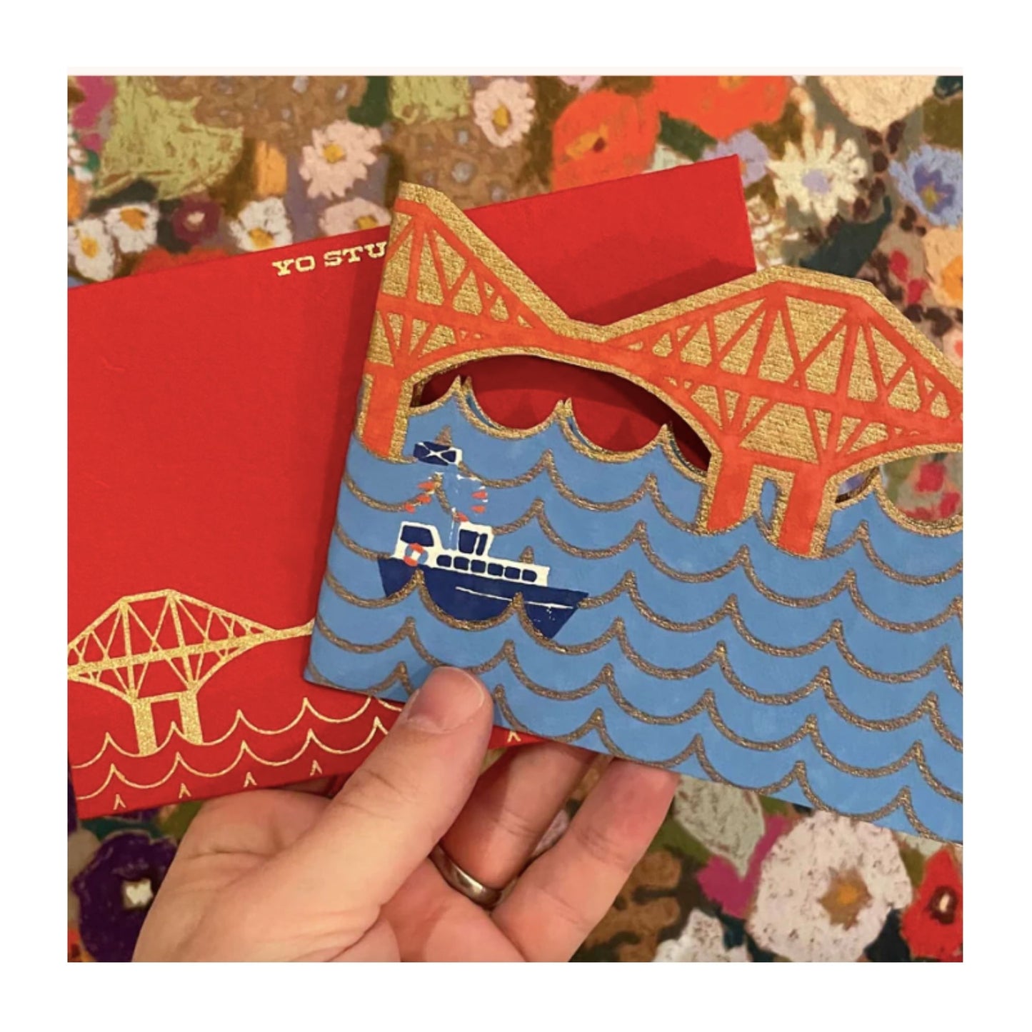 This stunning Forth Bridge Fold Out Card from YO Studio, featuring the iconic Forth Rail Bridge shining bright spanning the Forth.