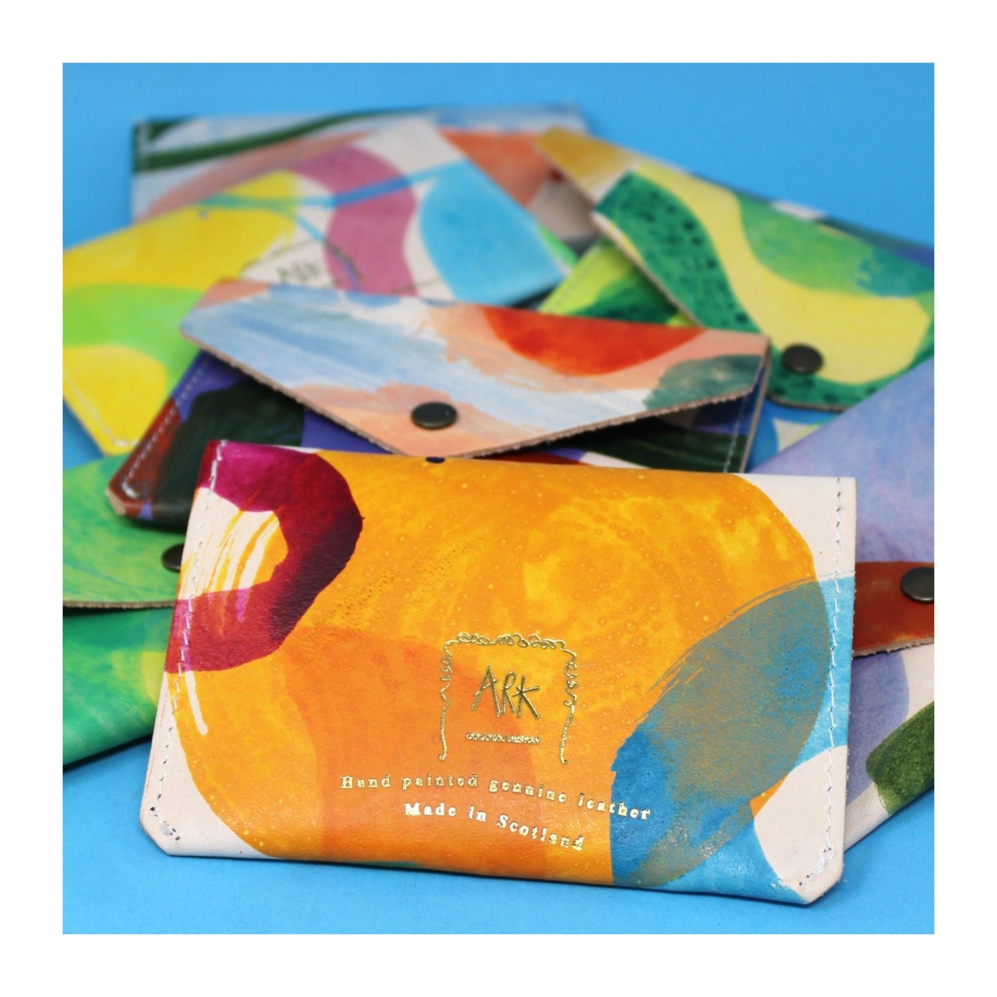 These perfectly gift-able purses have been made from 100% genuine leather, handcrafted and painted in ARK Colour Design's Cambridgeshire workshop.