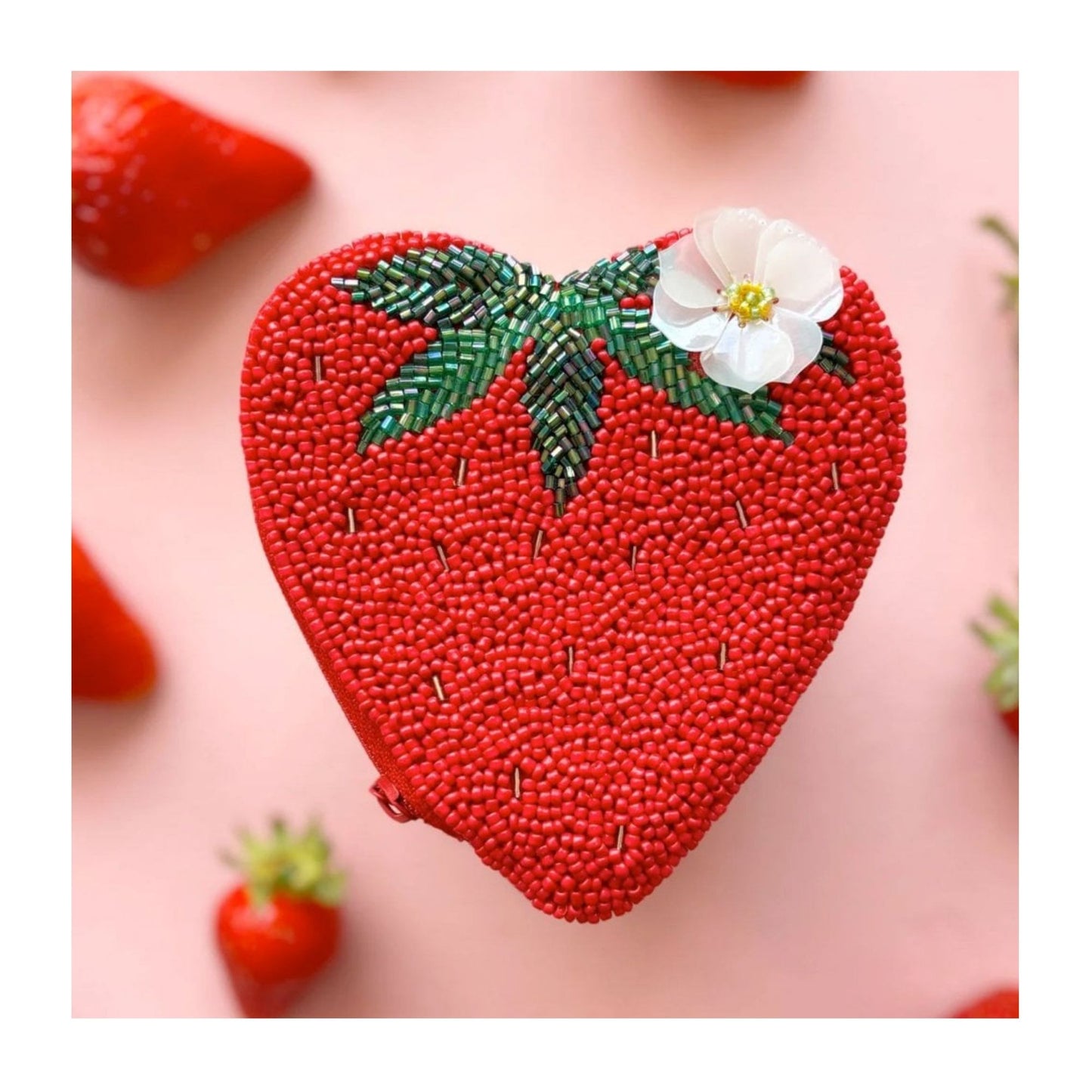 A vibrant and colourful Strawberry Beaded Purse from House of Disaster. Perfect for gift-givers seeking something unique, collectors of statement accessories, or anyone wanting to add a pop of colour to their everyday carry.