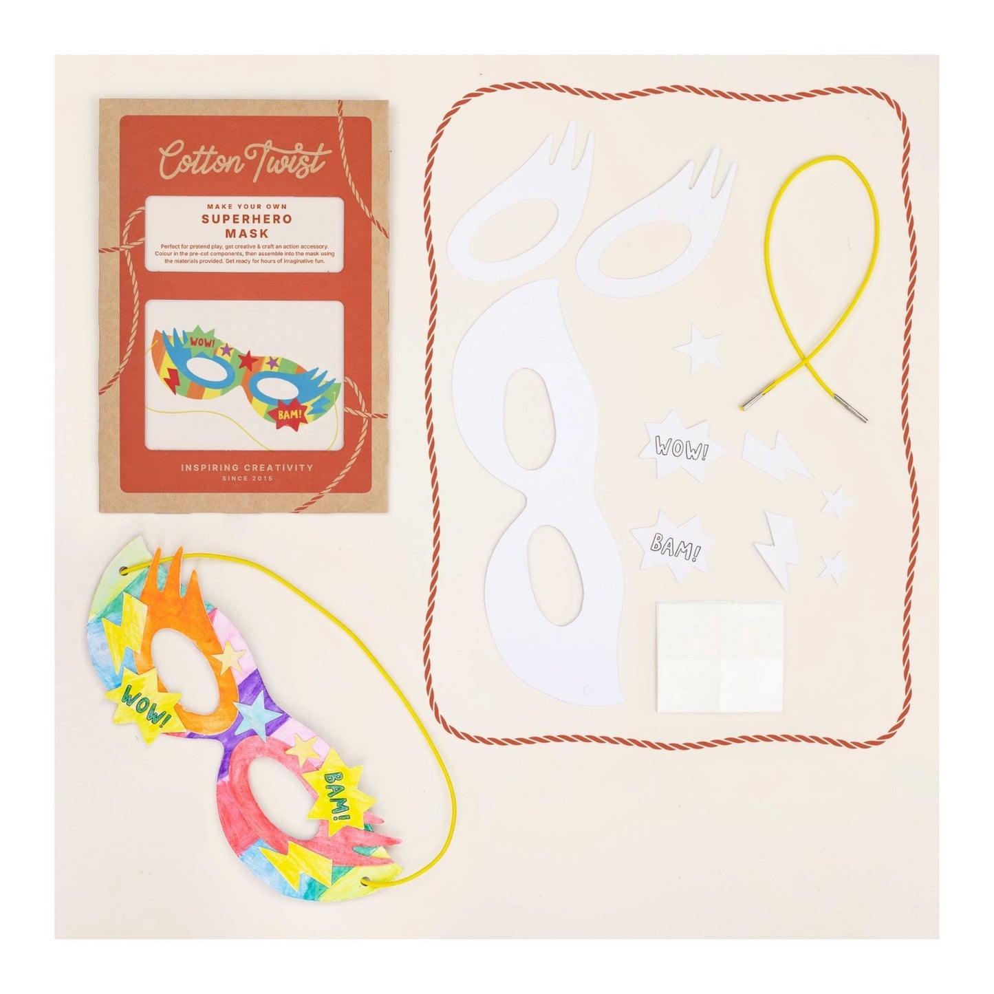 A mini kids craft kit from Cotton Twist. This Superhero Mask Kit is a brilliant crafty gift for creative little ones.