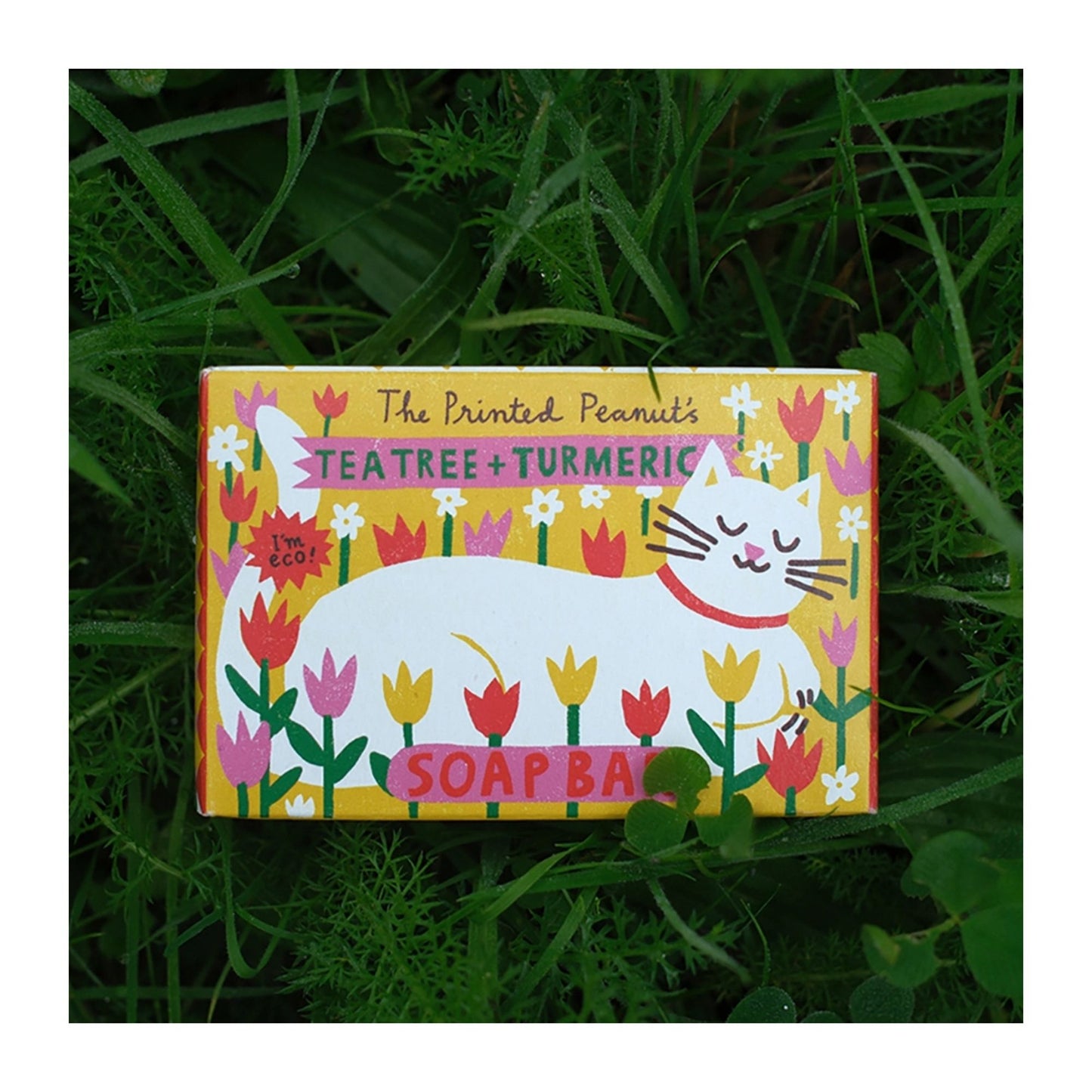 Ingredients: Sodium cocoate, Sodium rapeseedate, Aqua, Sodium shea butterate, Melaleuca alternifolia (tea tree) leaf oil, Curcuma longa (turmeric) root powder, Limonene* *occurs naturally in essential oils.