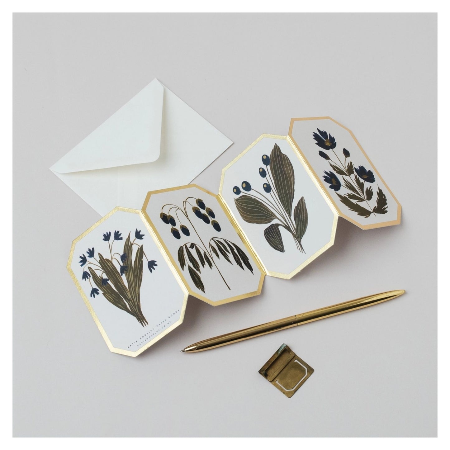 Blue Floral Botanical Concertina Card
