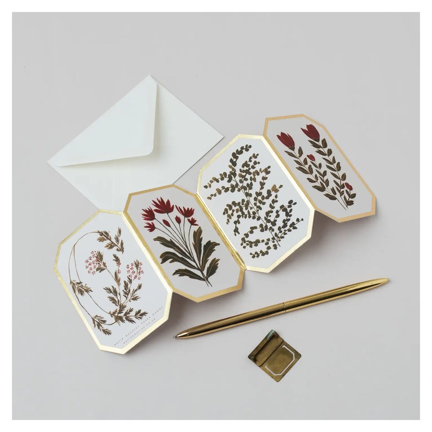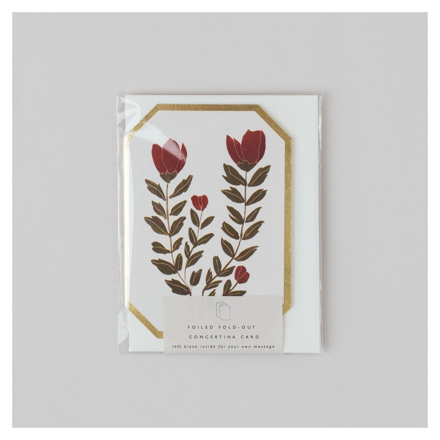 Red Floral Botanical Concertina Card