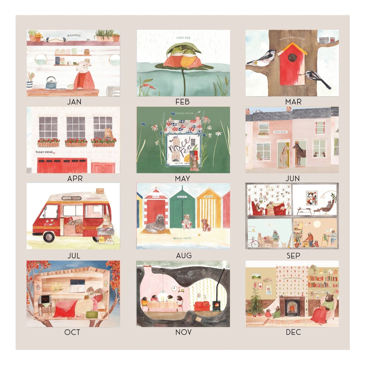 This beautifully illustrated Home Sweet Home 2026 Calendar from Mister Peebles, features 12 months of animals making themselves at home, from birds making home tweet home to moles in their nice cosy digs.