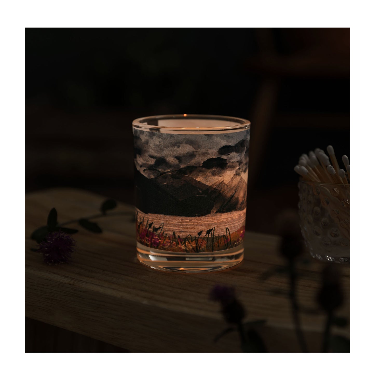 We have decided to carry that ethos through to these brand new candles. The illustration is printed onto a clear glass votive, which allows the flicker of the candle flame to create the most beautiful glow through the illustration.